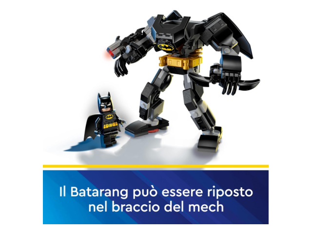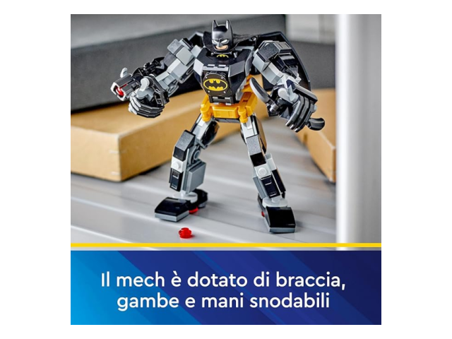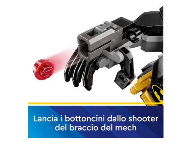 - Robot giocattolo collezionabile: include un mech Batman™ costruibile con Batarang™, lancia-bottoncini e jetpack, più una minifigure di Batman con mantello in tessuto e Batarang, che può essere conservato nel braccio del mech