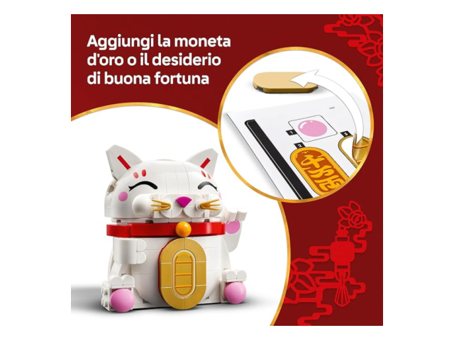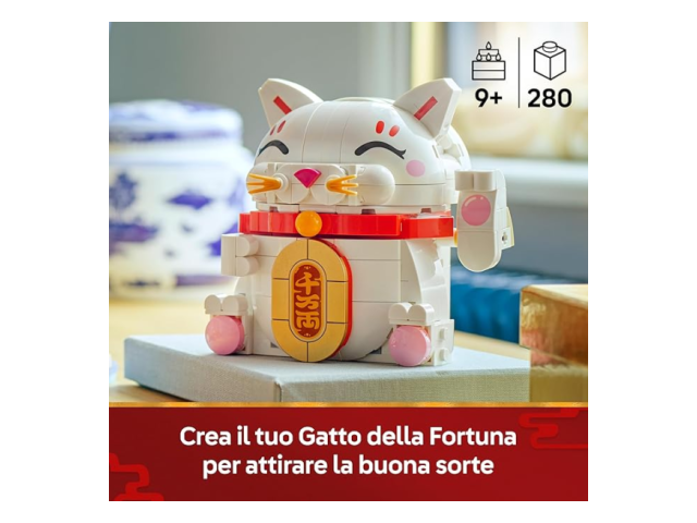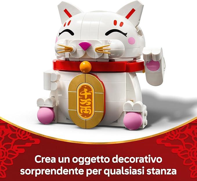 - Elemento decorativo portafortuna: questo divertente set costruibile Gatto della fortuna LEGO® è un accattivante oggetto da esposizione che porterà sicuramente tanta fortuna e prosperità al proprietario