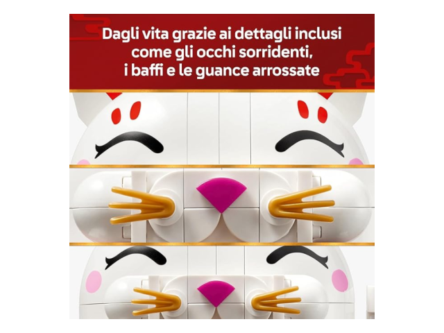 Celebra la tradizione con un elemento decorativo che porta fortuna e prosperità in ogni casa. Questo set costruibile del Gatto della fortuna LEGO® è uno straordinario display per ogni stanza e porterà sicuramente tanta fortuna al suo proprietario!