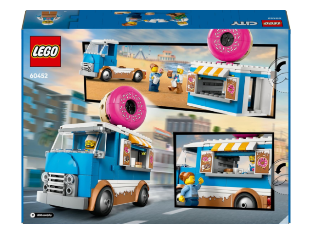 - Cosa c’è nella scatola? Questo set con camion di vendita contiene tutto ciò di cui i bambini hanno bisogno per creare un furgone delle ciambelle giocattolo con un chiosco staccabile, più le minifigure del venditore e del cliente e accessori