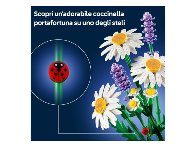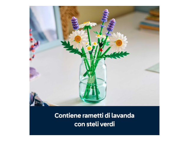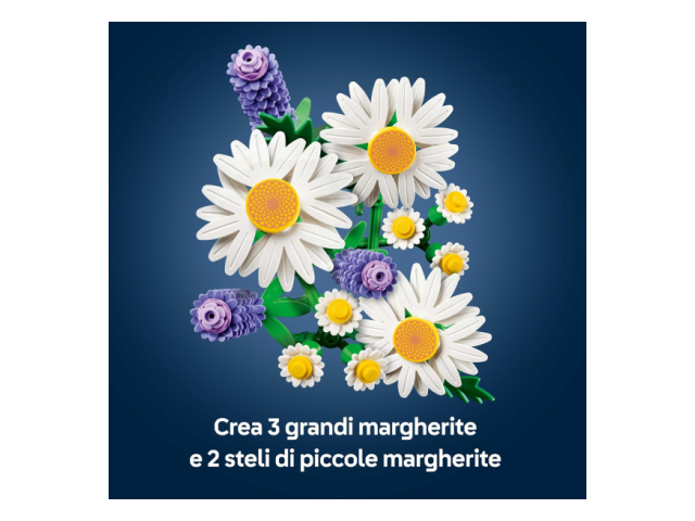 - BOUQUET DI FIORI LEGO®: gli aspiranti fioristi si divertiranno a costruire 3 grandi margherite, 2 steli di piccole margherite, 3 lavande rilassanti e steli verdi vivaci