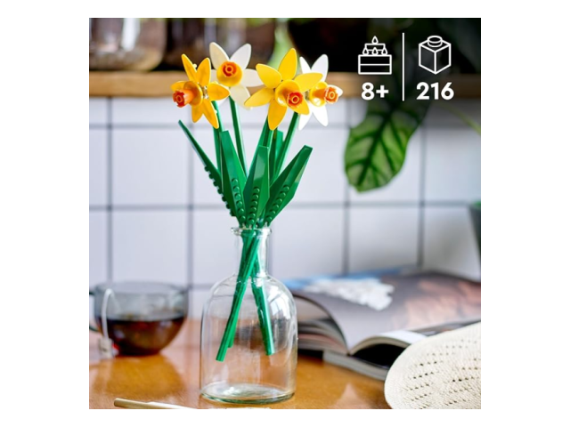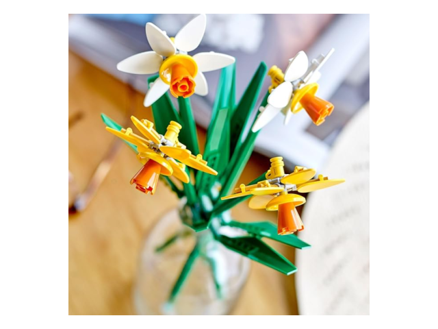 - Un regalo creativo per festeggiare: lascia che gli amanti dei fiori dagli 8 anni in su creino un bouquet in mattoncini con i Narcisi LEGO® e lo espongano con orgoglio come decorazione floreale