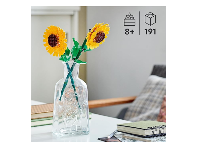 - Un display di girasoli da costruire: crea un oggetto da esposizione con cui abbellire qualsiasi stanza con il colorato kit di costruzione Girasoli LEGO® (40524). Include due 2 fiori di girasole con steli e foglie verdi regolabili