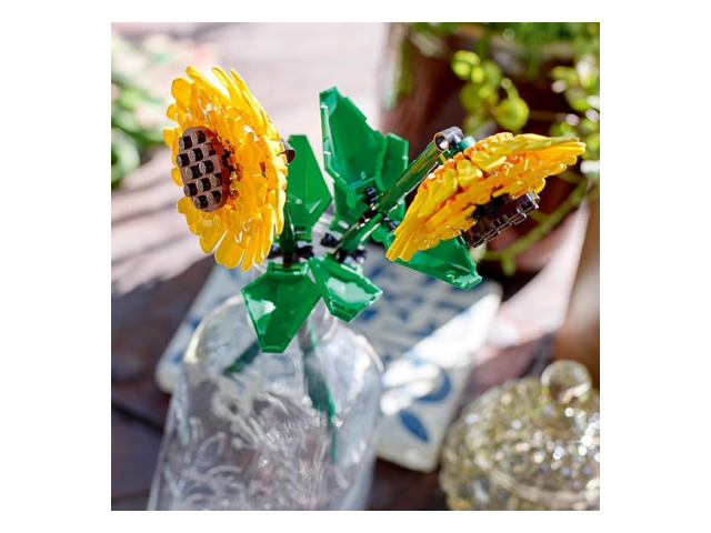 - Combinazione con altri set: Girasoli LEGO® può essere esposto da solo o in combinazione con i set Rose LEGO (40460), Tulipani LEGO (40461) o Bouquet di fiori LEGO (10280), ciascuno venduto separatamente